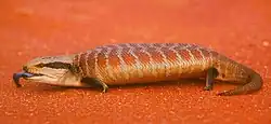 The Centralian blue-tongued skink or Centralian blue-tongue (Tiliqua multifasciata) is a species of skink,[2] occurring predominantly in the far north-west corner of New South Wales, Australia.[3] It is one of six species belonging to the genus Tiliqua; the blue-tongued skinks and the shinglebacks. This species of reptile classifies as a lizard.