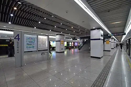 Century Avenue (simplified Chinese: 世纪大道; traditional Chinese: 世紀大道; pinyin: Shìjì Dàdào) is a major Shanghai Metro interchange station named after Century Avenue, which runs above the station. It is currently one of two stations (the other one being Longyang Road station) on the Shanghai Metro network to serve four lines (namely Lines 2, 4, 6 and 9), and the first four-line interchange metro or subway station in mainland China.[1]