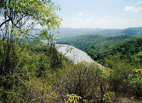 Cerros de Amotape National Park is located in the provinces of Tumbes and Contralmirante Villar in the region of Tumbes and the province of Sullana in the region of Piura.[2] It has an area of 151,561.27 hectares (1,515.61 km2) which includes the mountain range called Cordillera de los Amotapes and the Tumbes River, the only navigable river on the Peruvian coast.[2] The park has an elevational range between 120 m and 1538 m.[3]