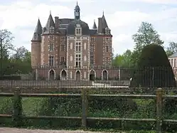 The present stately home was restored by the Maréchal d'Estampes during the first quarter of the 17th century and completed in 1627. It is a high brick building erected on an ancient mound, leveled in a succession of two terraces above the moat.