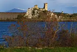 In 1077, his successor Rostaing granted the fief to Pierre d'Albaron, who built a keep there.[3] The first mention of a Castro Novo (new fortified village), which led to the name Châteauneuf-du-Pape, does not appear until 1094[4] It became the château de l'Hers after it was expanded in the 12th century and then was renovated for the first time during the 13th century.[5] Certain historians have said that the Knights Templar used it at the end of the 12th century.[1][6] This legend was disproven by the historians in the 20th century.[7]