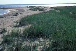 The island is roughly triangular. It is 1.4 miles (2.3 km) long and an 0.125 miles (0.201 km) wide. The highest point on Chamisso Island is 226 feet (68.9 m) above sea level. It comprises one large sand spit and a low beach zone surrounding a covering of tundra with a few marshy bogs. Although Chamisso Island is much larger, nearby Puffin Island houses many more nesting birds, especially horned puffins, black-legged kittiwakes, and thick-billed murres which build their nests on the steep-walled cliffs that fall into Spafarief Bay. Iñupiat cross from the mainland to gather eggs, primarily from kittiwakes and murres. With the exception of birds and the occasional fox that crosses frozen sea in winter, nothing lives on the islands. Walruses, seals, and whales can often be seen in Spafarief Bay.[2]