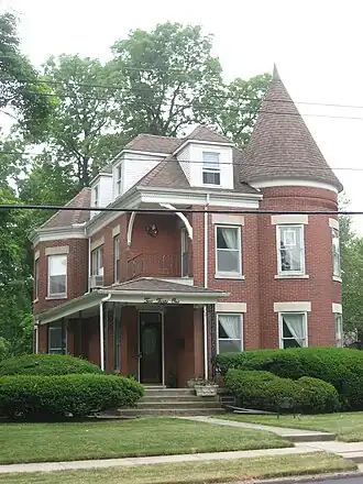 Charles E. Nichols House is a historic home located at Lowell, Lake County, Indiana. It was built in 1902, and is a 2+12-story, Queen Anne style brick dwelling with a cross hipped roof. It features a stately corner tower with conical roof, side bay windows, and a bracketed balcony over the front entrance. Also on the property is a contributing carriage house.[2]: 3