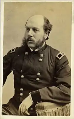 Sawtelle served in the Union Army during the American Civil War; having begun specializing in quartermaster duties early in his career, he continued in this career field during the war.[4] He commanded the Quartermaster Depot in Perryville, Maryland from May 1861 to March 1862, and he was promoted to captain in May 1861.[4] During the Peninsula Campaign, he supervised the Army of the Potomac's disembarkation and movement of supplies from: Fort Monroe, Virginia (March to May, 1862); White House, Virginia (May to June, 1862); and Harrison's Landing, Virginia (July to August 1862).[4] At the end of the campaign, Sawtelle superintended the Army of the Potomac's embarkation at Fort Monroe, Newport News, Hampton and Yorktown (August to September 1862) and transport back to the Washington, D.C. area.[4]