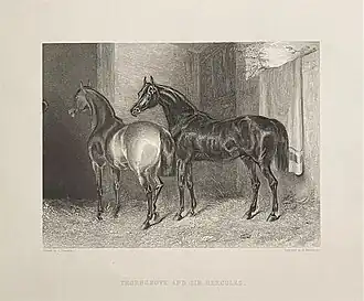 At one period of his career, it would seem that Charles Hancock was the fashionable painter of racehorses between the years 1835 and 1843. It was at that time when Hancock's paintings of horses came to the attention of the proprietor of The Sporting Magazine and, more importantly, to Rudolph Ackermann in Regent Street. Hancock succeeded John Ferneley in supplying paintings of Derby and St Leger winners to Ackermann who was publishing prints of these classic racehorses in competition with S. & J. Fuller at the time.[6][7][8]