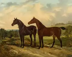 Charles Hancock (around 1800 – 30 July 1877) was a British painter of animals, specialising in equestrian sporting scenes. One of his largest and most recognisable works is the double portrait of two thoroughbreds in a wide landscape, showing Sir Hercules and Thorngrove.