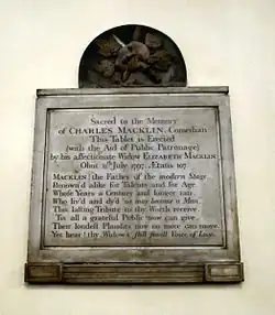 Macklin's memorial plaque in St Paul's in Covent Garden