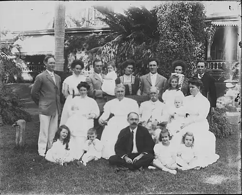 He died August 27, 1909, after a second stroke.[11] Most of the family is buried at the Mission Houses Cemetery near Kawaiahaʻo Church.[12] A house he had built on Thomas Square in 1882 became the Honolulu Museum of Art. Anna Rice Cooke also left 4500 pieces of artwork they had collected to the academy.[13] His estate was incorporated as Charles M. Cooke, Ltd. in 1898, and dissolved and distributed to 58 shareholders in 1942. Some of the assets became the Charles M. and Anna C. Cooke Trust, which became a charitable foundation in 1971. In 1980, it became the Cooke Foundation. The Hawaii Community Foundation continues to administer grants.[14]