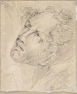 Juliusz Słowacki on deathbed. Sketch done by his friend, Charles Pétiniaud-Dubos (1849)