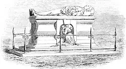 He is buried at Abney Park Cemetery near the Church Street (southern) entrance, in a grave marked by a grey granite obelisk.[17] The top is missing from the obelisk. His wife, Margaret (1817–1891), and eldest son, Charles Edward Baines Reed (killed accidentally in 1884), lie with him. His second son, Andrew Holmes Reed, lies nearby to the south, beneath a large grey granite Celtic cross.