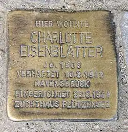 1. ^ a b "Charlotte Eisenblätter". Koordinierungsstelle Stolpersteine Berlin. Stolpersteine Berlin. Retrieved 9 November 2023.