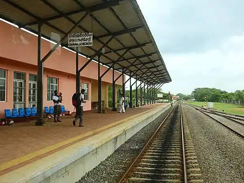 Chavakachcheri railway station is a railway station in the town of Chavakachcheri in northern Sri Lanka. Owned by Sri Lanka Railways, the state-owned railway operator, the station is part of the Northern Line which links the north with the capital Colombo. The popular Yarl Devi service used to call at the station. The station has not been functioning since 1990 due to the civil war.