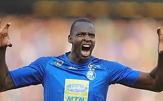On 9 July 2019, Diabaté signed for Iranian club Esteghlal on a two-year contract.[27] He was handed the number 7 shirt.[28] He debuted for the club on 23 August, coming on as 67th-minute substitute for Farshid Esmaeili in a league match against Machine Sazi.[29] Six days later, he made his first start in his first appearance at Azadi Stadium in a 1–1 draw against Foolad.[30] On 1 November, he scored his first goals for Esteghlal, netting a hat-trick in a 4–2 away win against Tractor.[31] He scored a brace in his AFC Champions League debut against Kuwait SC in a 3–0 victory.[32] He ended the season with a tally of 18 goals in all competitions of which his 13 goals in the league made him the top scorer for that season.[33]