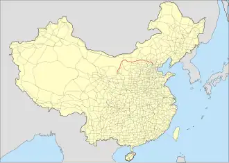 China National Highway 110 (G110) runs from Beijing to Qingtongxia, via Hohhot, Baotou in Inner Mongolia, and Yinchuan. It heads northwest from Beijing to Zhangjiakou then heads straight west, and runs to approximately 1,100 kilometers (680 mi).