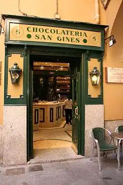 - ^ a b c "Chocolatería de San Ginés". Welcome to Madrid (official tourism website). 2024-10-21. Retrieved 2025-08-11.