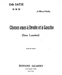 Choses vues à droite et à gauche (sans lunettes), commonly translated as Things Seen Right-to-Left (Without Glasses), is a suite for violin and piano by Erik Satie. Composed in January 1914 and published in 1916, it is the only work he produced for violin-piano duet.[1] A typical performance lasts about 5 minutes.