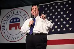 The 2016 presidential campaign of Chris Christie, the 55th Governor of New Jersey, began on June 30, 2015, at an event in his hometown of Livingston, New Jersey.[2] Following a poor showing in the New Hampshire primary, the campaign was suspended on February 10, 2016.[3][4][5][6] He endorsed Donald Trump on February 26, 2016.[7]