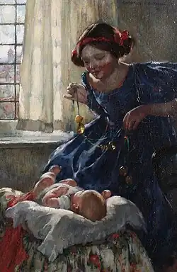 - Morning Play (1910), oil on canvas (54 × 36 cm), woman and baby[17]