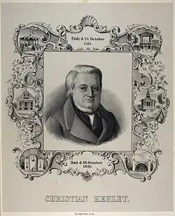 The factory was founded by Christian Kehlet (1785–1846) in 1825.[1] Christian Kehlet was originally a tea and porcelain merchant. His chocolate factory may initially have been located in the groundfloor of Pilestræde 98 (later No. 11 and now replaced by the Illum Department Store)[2] but it was from 1830 based at Østergade 34. The machinery was from the beginning operated by steam engines.[3] The factory was later located at Gothersgade 25.