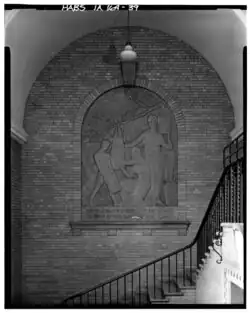 Sculpture in the main stair hall of the Dairy Industry Building, part of Petersen's History of Dairying, 1935.