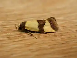 Chrysonoma fascialis is a moth of the family Oecophoridae. It is known from Australia and Papua New Guinea.
