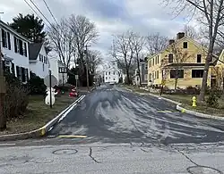 Church Street is a historic street in Yarmouth, Maine, United States. It runs for about 425 feet (142 yd) from West Elm Street in the east to Hillside Street in the west. It was one of the first streets laid out after the town's population moved inland from the Broad Cove area in the 19th century. Several of its buildings are homes dating to the late 18th and early 19th centuries.