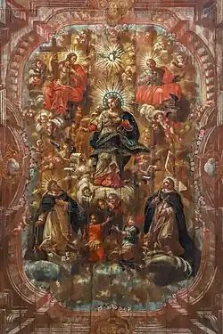 Two lateral corridors were added in the same period that correspond to the tower structures. The interior of the church was renovated in the late 19th century; two new altars in the Neoclassical style were added, in addition to numerous paintings.[2][6]