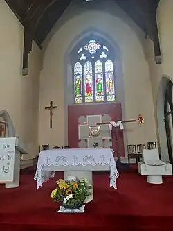 The Church of Our Lady and Saint Joseph was built in 1866–69 in a Gothic Revival style and dedicated to Mary and Joseph.[5] It has a four-bay double-height nave with four-bay single-storey lean-to side aisles to the north-west and to south-east, and a single-bay double-height lower chancel to the north-east.[6][7]