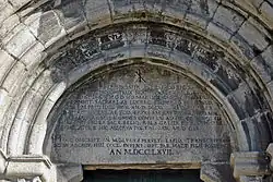 An inscription was made into the western door tympanum around 1767, stating that the Church was founded in 559 by King Theodemar, and consecrated by the Bishop of Braga, Lucrécio (561–562).[1][2] Although it was copied from a parchment found in the canon's archives in 1556, the original stone, on which it was based, has never been found.[1]