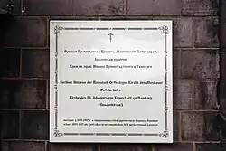 It is presently the largest Russian Orthodox church in Germany. The languages of worship are Church Slavonic and Russian, with parts of some services in German.[11] The church's community center, built next door and called the Tschaikovsky House (German:Tschaikowskyhaus), was opened in 2014.[12] It includes furnished attic rooms where pilgrims and believers can give a donation to spend the night.[2][11] The building includes a concert hall, Tschaikovsky Hall (German: Tschaikovskysaal, and while it has a wider cultural mission, two of its primary focuses are Russian culture and cross-cultural collaboration between Germany and Russia.[13] The community house also includes, among other things, a restaurant, an art school, a theater school and a Sunday school for children.[14]