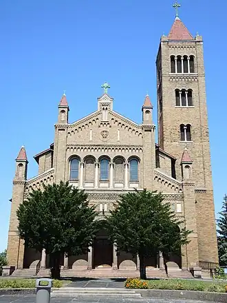 Church of Saints Peter and Paul Complex, now known as the Coptic Monastery of Saint Shenouda, is a historic Roman Catholic church complex located on the edge of the Susan B. Anthony neighborhood of Rochester, Monroe County, New York. The complex consists of the Italian Renaissance Revival style church (1911), former school (1912), rectory (1926), and rectory garage (1926). The church features a loggia and 145 feet tall bell tower. The school has been converted to 12 apartments. The church was sold to the Coptic Monastery of Saint Shenouda in 2007.[2]: 3–4, 6