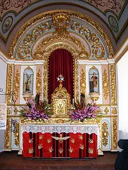 In the main altarpiece is an image of Santa Bárbara, on the left, an image of Nossa Senhora do Carmo, while on the right São Lourenço. The lateral altars were dedicated to the Sacred Heart of Jesus, São José and Santo António, on the left, and, on the right, the Sacred Heart of Mary. In the body of the church are smaller spaces with altar dedicated to Senhor Santo Cristo and for the baptistery.