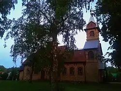 Former church in Łaziska, since 1947 a Catholic church. In the architecture of this temple, especially in the design of the bell tower, there are elements resembling the appearance of the church in Zabłocie