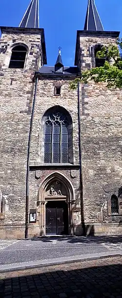 The original building was a Romanesque basilica which was reconstructed many times and today's church is mainly in Gothic style with Romanesque elements.