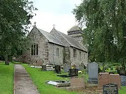 The origins of the building are Norman, with the base of the tower,[1] and some of its lancet windows appearing to date from this time.[2] The body of the church is later, of the 14th and 15th centuries. J. P. Seddon undertook a sensitive restoration in 1862–63.[1] There have been few alterations since this time and the church remains an active church in the parish of Llanddewi Rhydderch.[3]
