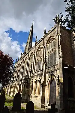 The 14th-century tower and spire of the previous building were retained until it was rebuilt in 1891 using the same stones.[5][2]