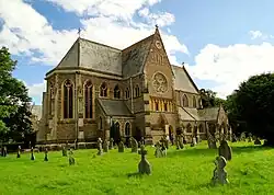 The church was part of St Michael's College, a boys' school founded by Sir Frederick Ouseley in 1856.[3][4] The church and the college buildings were designed by Henry Woodyer, known for his church buildings in Gothic Revival style, and built from 1856 to 1858.[2][5][6]
