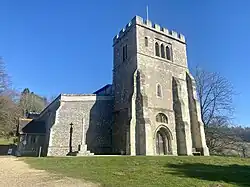 The church primarily dates back to the 14th century, with significant enhancements made in the 15th century.[1] Notably, the tower has an asymmetrical lower level due to its southward extension after the Reformation. This extension, featuring a nearly 14-foot thick wall, was constructed to support a new belfry, which housed five bells that had been relocated from the dissolved Missenden Abbey.[2] The church underwent restoration, and its northeast aisle was rebuilt between 1899 and 1900[1] by the architect John Oldrid Scott.[3]