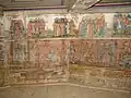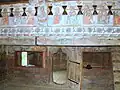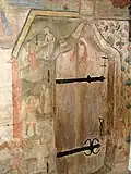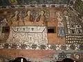 All the interior walls are painted with murals in bright colours by Nicholas Mann and Radu Munteanu from the village of Ungureni who also produced wall paintings for the church in Desești and others in the Lăpuș area.[6] The murals date from 1785 as documented in inscriptions in Cyrillic.[5] The scenes represented are not coherent as some are missing and some are fragmented. In 1834 the ceiling and nave were repainted by an unidentified artist.[2]