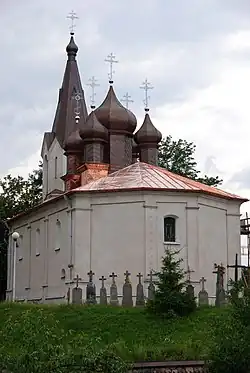 The earliest mention of an Orthodox church in Mielnik dates back to 1260. It notes the existence of a church with a particularly venerated icon of the Mother of God, before which Vasylko, brother of Daniel of Galicia, prayed as he embarked on a campaign against the Yotvingians. This was most likely a castle church, and the exact time of the establishment of the Orthodox parish in Mielnik is impossible to determine due to a lack of documents.[1] Legendary accounts date the founding of the church in Mielnik as far back as the 11th century.[2]