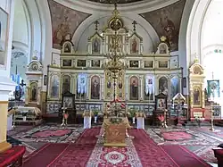 In 1882, the church's walls and ceiling were decorated with paintings, and the iconostasis was conserved.[7] The frescoes were created by Harponiuk, a local official, who was paid from voluntary contributions by the faithful and clergy, as well as church funds.[1]