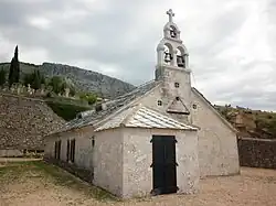 The Church of the Nativity of the Theotokos (Serbian Cyrillic: Храм рођења пресвете Богородице), known colloquially as the Old Orthodox Church, in Mostar is Serbian Orthodox church in Bosnia and Herzegovina. The church was built in 15th century.[1] The building was heavily damaged during the Bosnian War in June 1992 when it was mined and set on fire.[1] During the war, two valuable icons were saved by a local Bosniak family Jašarević.[1] These icons, of the Virgin Mary and Saint George, were returned to the Serbian Orthodox Church in Mostar in 2022.[1] The building is listed as a national monuments in Bosnia and Herzegovina.[1]