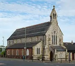 The Church of the Sacred Heart is the Roman Catholic parish church of the town of Fareham in Hampshire, southern England. It opened in 1878 on a centrally located site, replacing a converted shed which had been used for worship since 1873. John Crawley, a London-based architect whose other nearby Catholic churches include Portsmouth's Catholic cathedral and St Joseph's Church, Havant, was responsible for the design—a "small and well-detailed essay" in flint and brick,[1] in the Decorated Gothic Revival style. The parish has a second church in an outer part of Fareham, but another in the nearby village of Portchester has closed and has been demolished.
