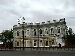 As a result, only one separately lying belfry was destroyed, and until 1960 the building (and, before that, the Holy Trinity monastery) was used as an archive by the People's Commissariat for Internal Affairs (NKVD), the Ministry for State Security (MGB) and the Ministry of Internal Affairs (MVD),[20] and as the Central State Library (now the Tyumen Scientifical Library).[8][19] From August 1941 to March 1942, 96 boxes of Crimean gold and antique museum valuables evacuated from a Simferopol museum during the Great Patriotic War were preserved there. The valuables were convoyed to Tyumen and guarded by K. Y. Dubinin, father of the former head of the Central Bank of Russia S. K. Dubinin.[21]