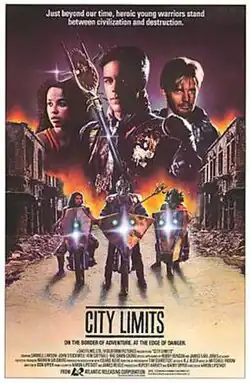 City Limits is a 1985 post-apocalyptic action film written and directed by Aaron Lipstadt and is based on a story by Lipstadt & James Reigle.[2][3][4] The film stars Darrell Larson,[5][6] John Stockwell,[7][8] Kim Cattrall,[9] Rae Dawn Chong,[10] John Diehl,[11][12] Pamela Ludwig,[13] Tony Plana,[14][15] Robby Benson,[16][17] Dean Devlin,[9][18][19] and James Earl Jones.[20]