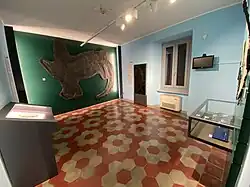 The museum's five rooms shows paleontological finds from the Besano area, including the Besanosaurus, a type of ichthyosaur from the middle Triassic period. The 6 meter Besanosaurus leptorhynchus discovered in 1993 is the biggest sea reptile fossil found in Italy, and was probably a pregnant female. Since 2001 the museum has also housed the remains of a Saltriosaurus, discovered in a quarry in Saltrio, which is the first big carnivorous dinosaur found in Lombardia.[2]