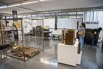 One of the main pieces in the collection is the original trunk used in the Suitcase Crime, a case that covered several Brazilian newspapers in 1928. On October 5, a trunk-shaped suitcase was found in the Port of Santos covered in blood with a mutilated female body inside; consequently, the case became known as the "Crime da Mala" (English: "Crime of the Suitcase").[8][10]