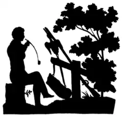 Von Greyerz was an accomplished papercutting artist. According to a story told by her granddaughter Emilie Billon-Haller, this began when she was given paper and scissors during an illness at age six.[6] The Stuttgart-based papercutting artist Luise Duttenhofer was a family friend who made a silhouette of her mother and was an artistic influence, as evidenced by von Greyerz' use of the same embossing techniques to make her work more lively.[6] It is possible that the two women came in contact during one of von Greyerz' visits to Stuttgart between 1803 and 1815, where von Greyerz stayed with Duttenhofer's friend Karl Mayer in 1813.[56] The two women swapped papercuts,[6] and some of the von Greyerz papercuts are now in the collection of the Schiller-Nationalmuseum, just like those of Duttenhofer.[57] As not all papercuts were signed, it is sometimes difficult to identify the creator in collections including works by both women.[6] According to Billon-Haller, the von Greyerz papercuts are poetic, allegoric or romantic and include beautiful landscapes.[6] There are also domestic scenes and antique or mythological themes present in her work,[6] as well as Biblical or Indic motives that she had encountered while reading.[51]