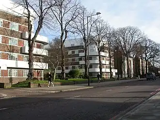 Following World War II, Oaklands House, Oakfield House, Clarence House, and their associated grounds underwent much development as this area was heavily damaged during the Blitz. The area immediately to the east of the Estate had been developed by the London County Council (LCC) in the 1920s as council housing, mostly in characteristic blocks of neo-Georgian brick flats. After 1945, most of the Cubitt houses were demolished and the northern part of the original area was redeveloped by the LCC in a very different Modern Movement style. On completion of the scheme the Clapham Park Estate became the largest single council estate within the London Borough of Lambeth.