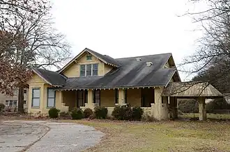 The Clark House is a historic house at 1324 South Main Street in Malvern, Arkansas. It is a 1+12-story wood-frame structure, roughly rectangular in plan, with a side-gable roof, projecting front-facing cross-gable sections on the left side, and a hip-roofed porch extending to the right. The roof extends over a recessed porch, with exposed rafter ends and brick pier supports. It was built in 1916 in Bungalow/Craftsman style to a design by architect Charles L. Thompson.[2]